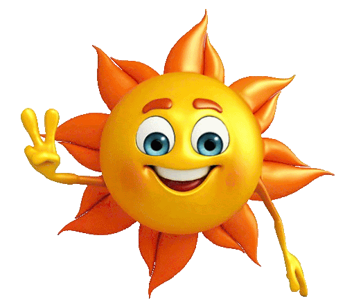 a cartoon sun giving a peace sign with its arm