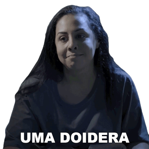 Evelyn Castro from Porta dos Fundos reacts with 'Uma Doidera' (A Craziness), expressing surprise or disbelief.