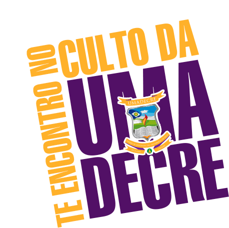 Animated purple and yellow sign for Umadecre Assembleia De Deus worship service, featuring a cross.