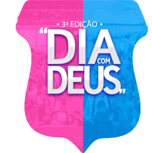 A pink and blue shield with 'DIA COM DEUS' text, representing a good day with God, from Umadecre.