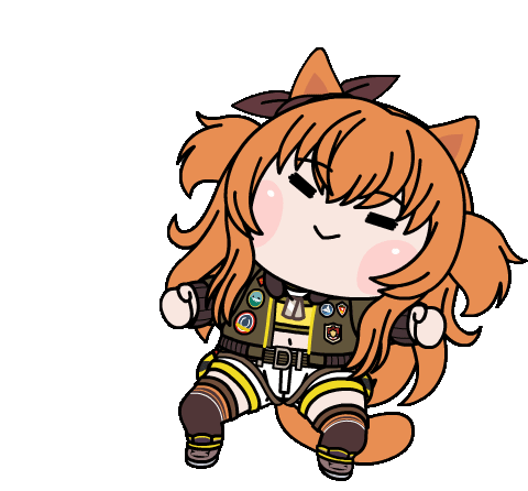 A cute chibi Umamusume Pretty Derby character with orange hair, cat ears, and a tail, winking and smiling in a playful pose.