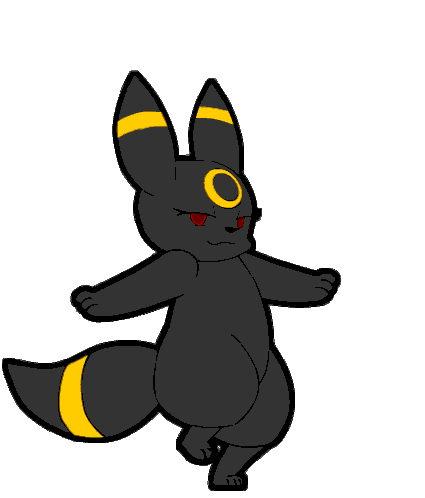 An adorable animated sticker of Umbreon, the Dark-type Eeveelution, happily dancing with its signature yellow rings.