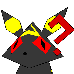 A pixel art Umbreon character with a red question mark appearing and disappearing next to its head.