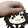 A cute Umi Pine Pet Hahaha Ume cartoon character's head is placed by a hand on a white background, creating a fun sticker.