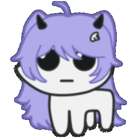 A cute purple-haired Umiuniverse character with horns and a happy expression does a joyful yippee dance.