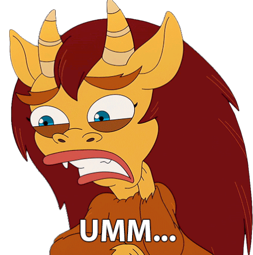 Connie the Hormone Monstress from Big Mouth looks confused and pondering, with 'UMM...' displayed. Perfect for moments of uncertainty.