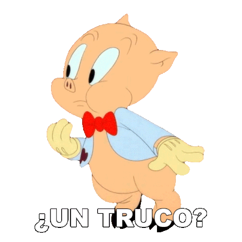 Porky Pig, the Looney Tunes character, asks '¿Un Truco?' (A trick?) with a surprised expression.