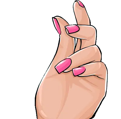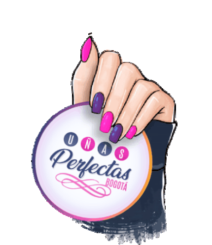 Animated sticker featuring a hand with perfectly manicured pink and purple nails, holding a 'Uñas Perfectas Bogotá' logo.