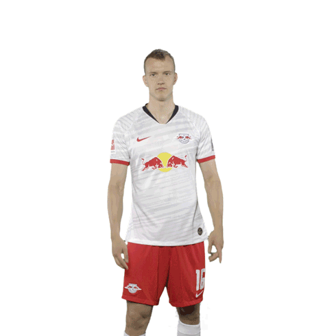 Lukas Klostermann points at the viewer, gives a thumbs-up, and waves goodbye, showing a playful and dismissive gesture.