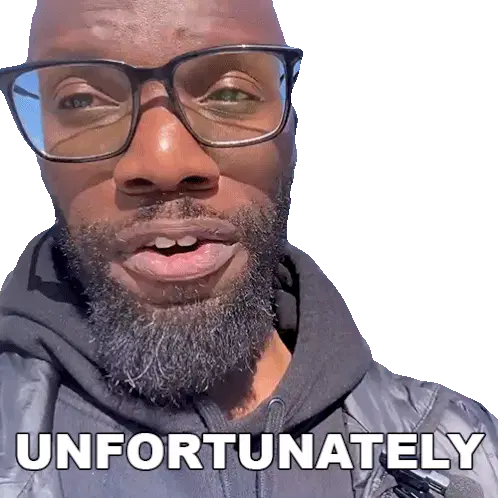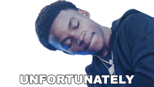 Yxng Ka reacts with a serious expression as the word 'UNFORTUNATELY' appears, conveying disappointment or bad luck.