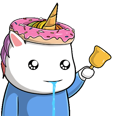 A cute chubbicorn with a pink donut on its head happily bounces, bringing a touch of magic and sweetness.