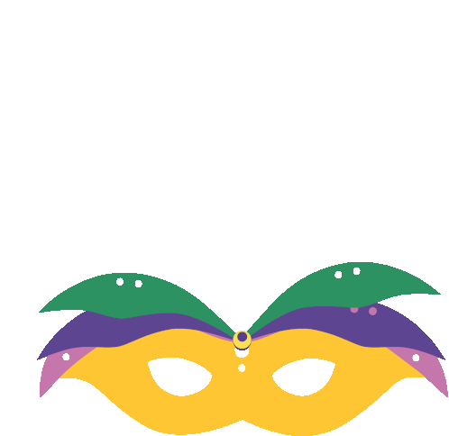 A festive Universal Mardi Gras mask sticker, featuring vibrant purple, green, and gold layers, perfect for celebrations.