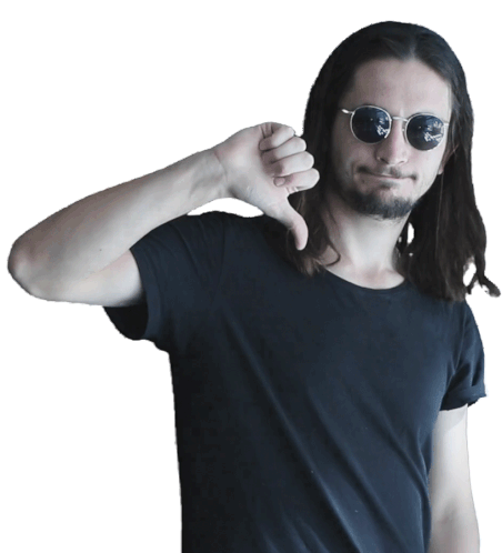 The Kiffness, wearing sunglasses, gives a clear thumbs down, expressing rejection or disapproval.