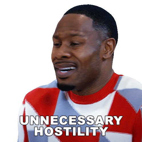 Gary Marshall Borders expresses 'Unnecessary Hostility' in a memorable moment, wearing a distinctive sweater.