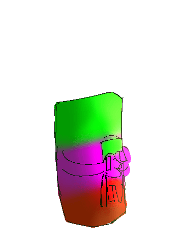 a colorful drawing of a person holding a bottle with the letter v on it