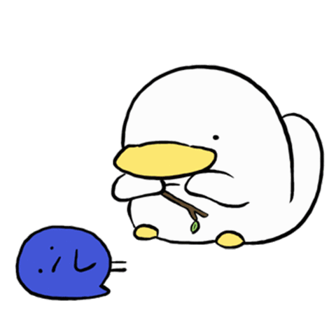 A cute, round duck-like character pokes a blue, unresponsive blob, showing disinterest or unwillingness to engage.