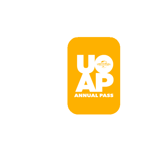 An animated sticker showcasing a stack of colorful Universal Orlando Annual Pass (UOAP) cards, with the top card prominently displaying the UOAP logo and text.