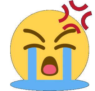 An animated emoji sticker depicting a yellow face crying profusely with large blue tears and angry red marks above its eyes.