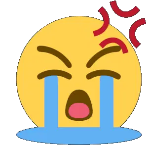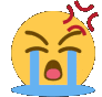 A pixel art emoji with an angry expression, wide open mouth, and large blue tears streaming down, conveying intense distress and frustration.
