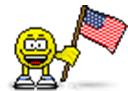 A cheerful pixel art smiley face character, with a wide grin, happily waves a small American flag, celebrating patriotism.