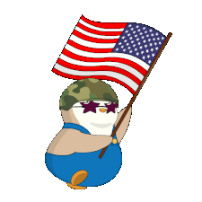 A cute cartoon penguin, wearing a military helmet and overalls, proudly waves a large American flag.