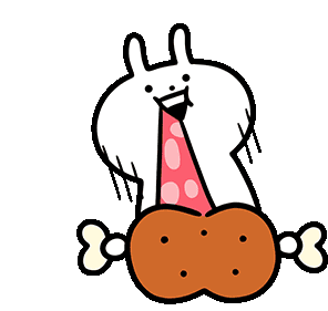 Usagyuuun, the energetic rabbit character, happily devours a large chicken drumstick with a wide grin.