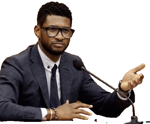 a man in a suit and tie is sitting at a table with a microphone