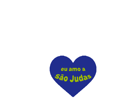 Animated blue heart sticker with 'eu amo a São Judas' (I love São Judas) in yellow and green text, representing USJT.