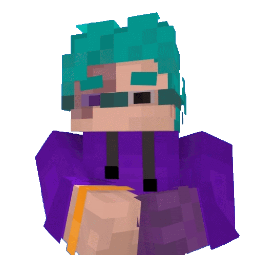a minecraft character with blue hair and glasses is wearing a purple hoodie .