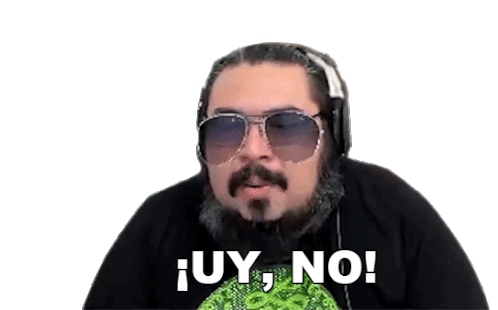 Agbean3r, wearing headphones and sunglasses, expresses disapproval with a head shake and the phrase '¡Uy, No!'.