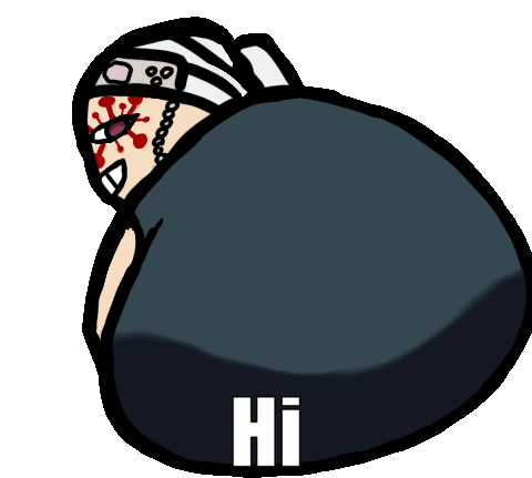 Uzui Tengen in an Among Us style performs a twerk, showing a bloody face and the word 'Hi' appearing.