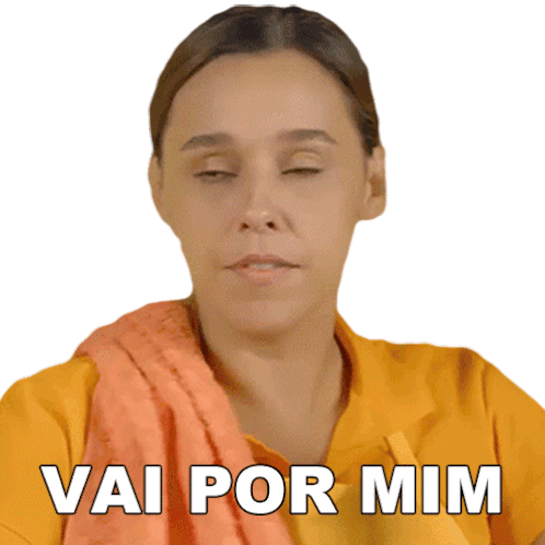 Thati Lopes with a skeptical expression, saying 'Vai Por Mim' (Trust Me) in a humorous way.