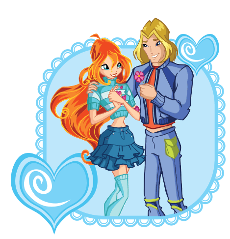 Bloom and Sky share a sweet moment, celebrating their love for Valentine's Day. A romantic Winx Club sticker.