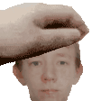 a hand is touching the forehead of a man .