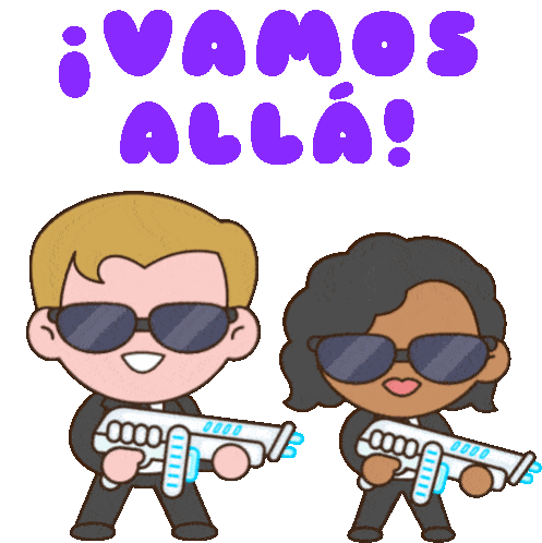 Agent H (Chris Hemsworth) and Agent M (Tessa Thompson) ready for action with '¡Vamos Allá!'.