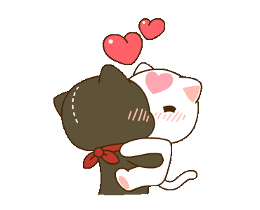 Van Van De sticker featuring a black and white cat hugging affectionately with hearts floating above them.
