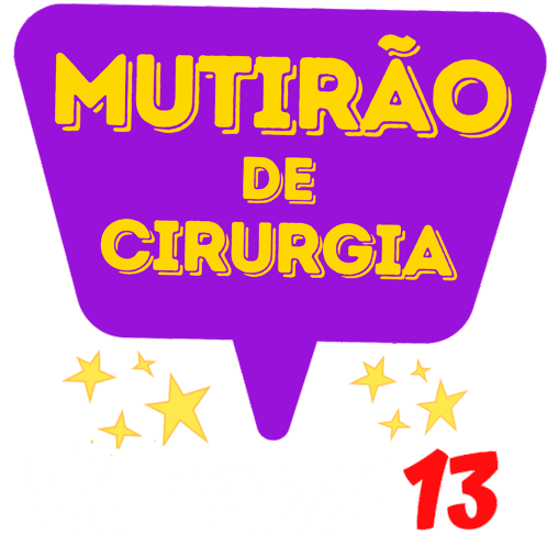 Sticker promoting 'Mutirão de Cirurgia' with names Vanazzi and Daniaffonso, featuring the number 13 and stars.