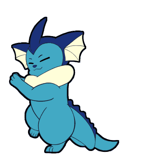 Vaporeon, the Water-type Eeveelution, joyfully dances, moving its fins and tail in a cute, animated sticker.
