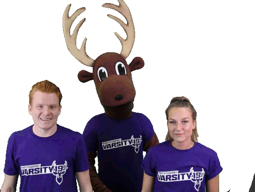 two people wearing purple shirts with the word varsity on it