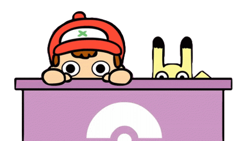 Pokemon Trainer and Pikachu peeking over a counter, with the Spanish phrase 'Vaya Vaya' appearing.