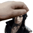 V from Devil May Cry is depicted in pixel art, holding a man's head, showcasing a dark and intense scene.