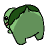 A cheerful green turtle character, Vedal, with a shell, stands in a dynamic pose, ready for action.
