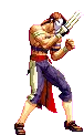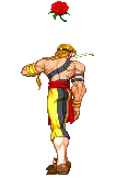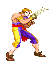Vega, the masked fighter from Street Fighter, is depicted in a classic pixel art animation, ready for combat.