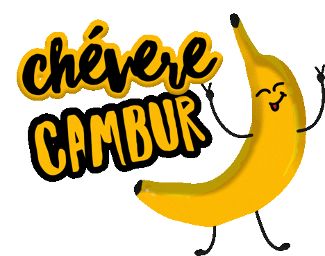 A cheerful cartoon banana character making peace signs, accompanied by the Venezuelan Spanish phrase 'Chévere Cambur' and 'Miss Muecas'.