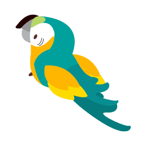 An animated sticker featuring a vibrant blue and yellow parrot, reminiscent of the Venezuelan flag, flying gracefully.