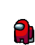 A pixelated red Among Us character emerges from a vent, performing the classic imposter action.
