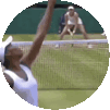 Venus Williams delivers a powerful ace serve during a tennis match, with Johanna Konta ready to receive.