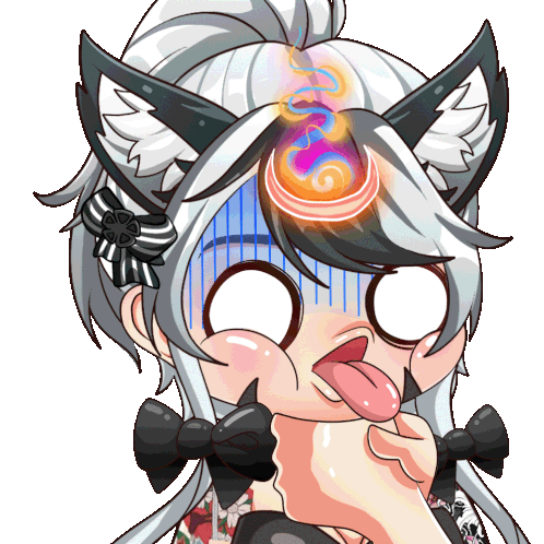 Veri, the VTuber foxgirl, makes an exasperated funny face with a swirl on her head, signaling 'shut up' or 'be quiet'.