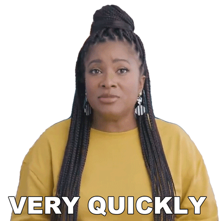 Angel Laketa Moore emphatically states 'VERY QUICKLY' with a serious expression, conveying speed and urgency.