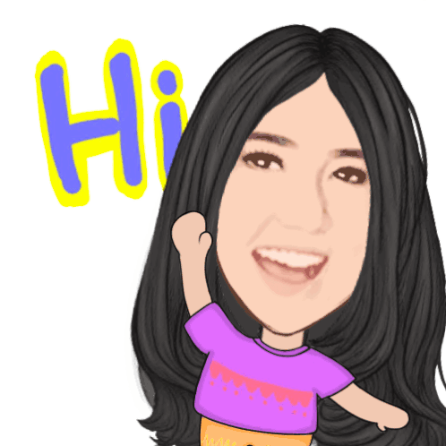 Animated sticker of Via Vallen, a woman with long black hair, smiling and waving with "Hi" above her head.